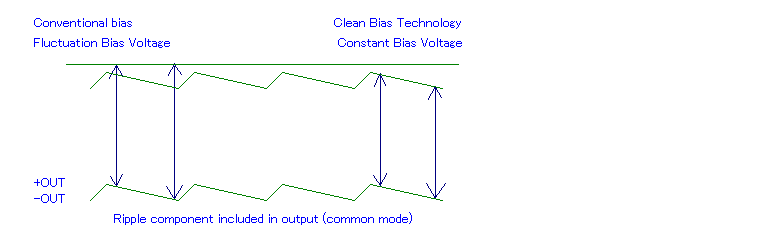 この盲点ともいえる問題点を改善したのがCBTで、アンプ側にリップルが存在するなら、同量をバイアス側にも加えることによって引き算した真のバイアス電圧はクリーンになるというのが基本原理です。これにより圧倒的に澄んで繊細でありながら生々しい音が得られるようになりました。